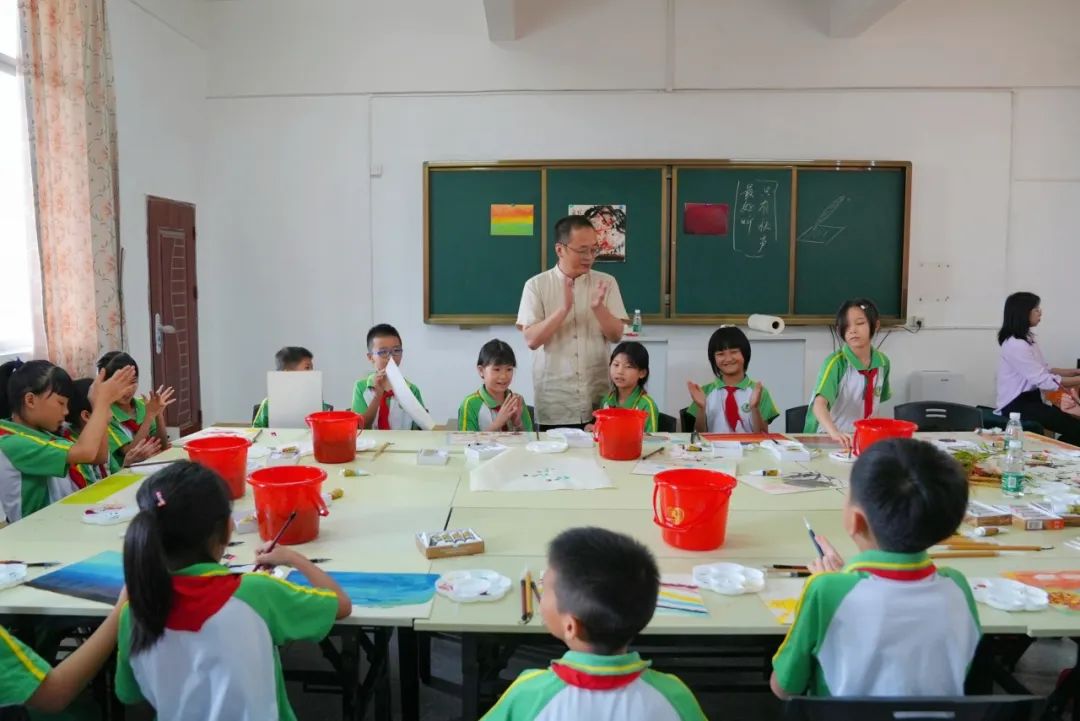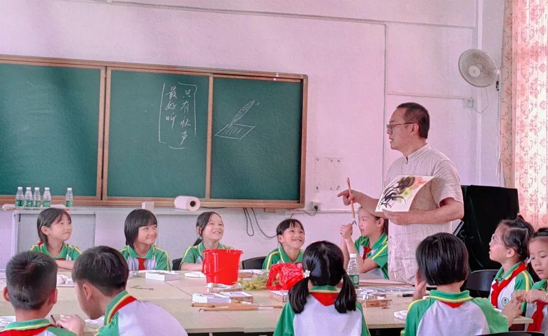 让更多的孩子能够走近美、欣赏美、表达美,本次永利yl23411还特别邀请书画家明羽老师,为彭寨学生们带来了一堂以《秋之烂漫》为主题的趣味十足的书画创作课。