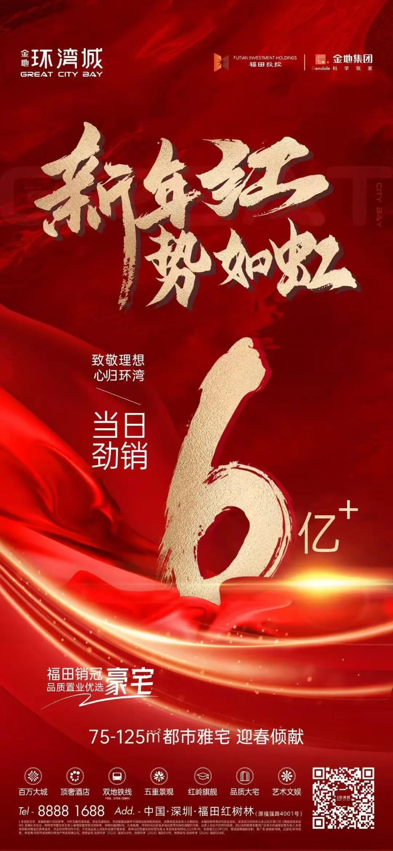 岁序更新,乙巳蛇年环湾城迎来开门红,1月25日加推的75-125㎡都市雅宅,当日劲销6亿+。越来越多理想主义者,怀着对理想生活的美好向往,选择环湾城。