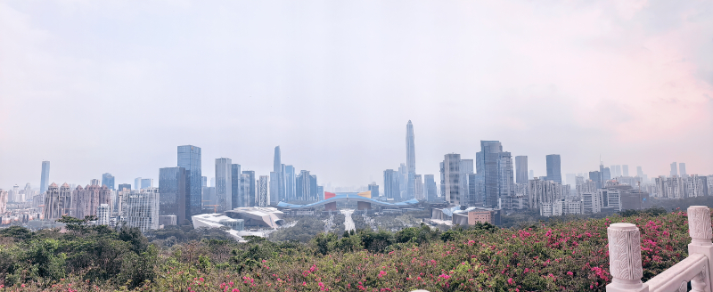 随着铜像的视线望向远方,福田区的数十栋摩天高楼迎风伫立,勾勒出城市天际线,让青春的热血在青年们心中澎湃。