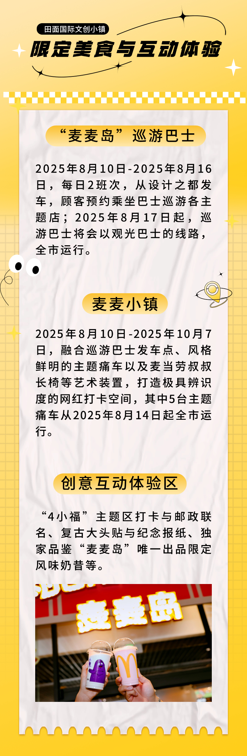 8月10日,麦当劳全国首家复古旗舰店在福田区田面国际文创小镇正式启动试营业,同时宣布自8月13日起,全国超7100家餐厅将开启“我去麦麦岛啦”主题活动,通过沉浸式场景、限定美食与社交互动,与消费者一起开启“度假模式”。