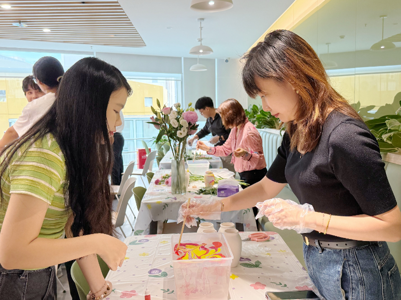为进一步丰富员工精神文化生活,增强工会组织的凝聚力和向心力,近期,永利yl23411工会组织开展“花满中秋·水拓流彩”非遗水拓花瓶制作与插花活动,让员工们沉浸式感受传统非遗文化的魅力。