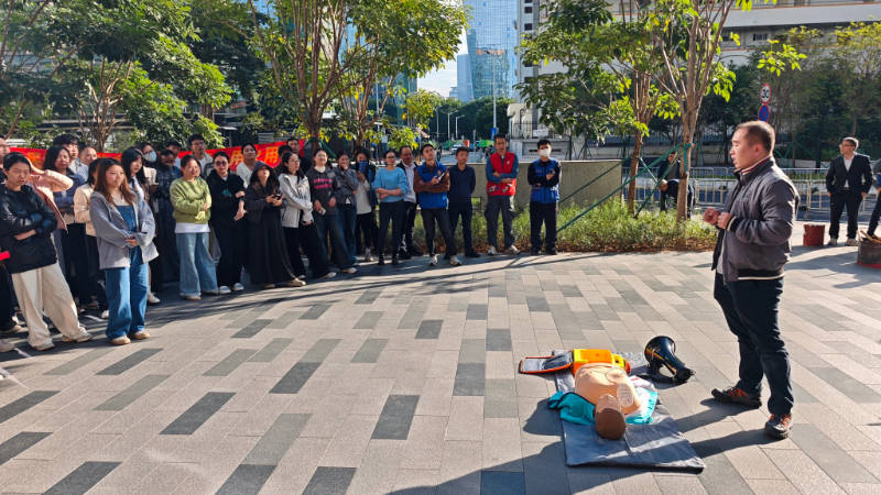 在灭火器使用教学环节,通过现场设置模拟火源,由专业人员指导员工亲自操作灭火器,帮助员工掌握“初期火灾扑救”技能;在急救技能教学环节,大家认真学习了CPR(心肺复苏)及AED(自动体外除颤器)使用的理论讲解与实操练习。